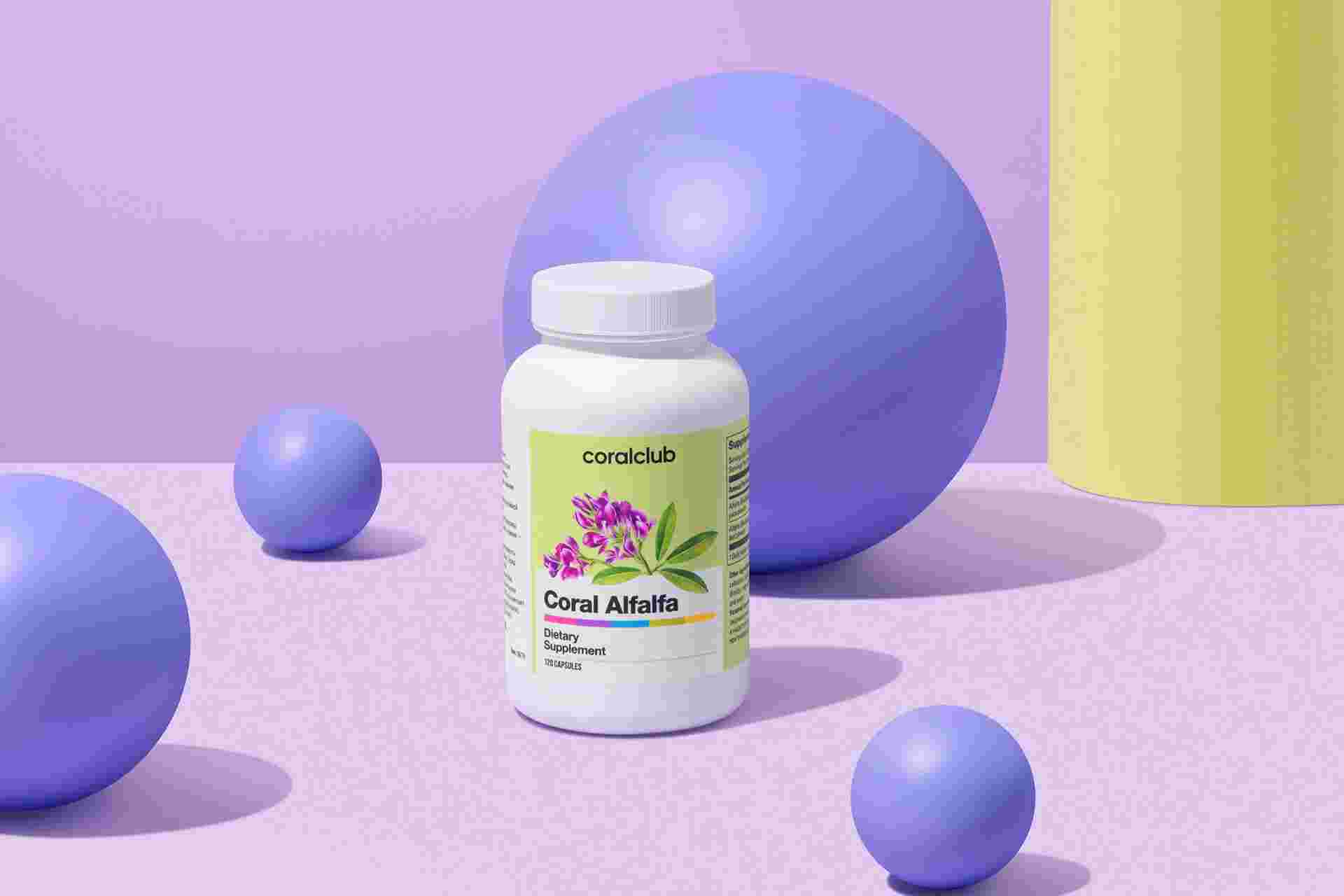 מיץ מרוכז של עשב אספסת, עשב אספסת, סידן פחמתי, רכיבי עזר.